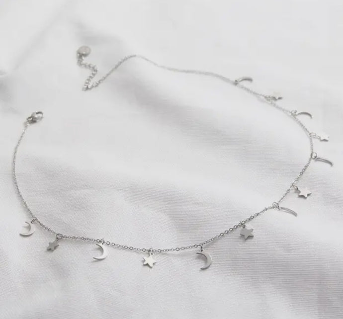 For the celestial lover this stainless steel moon and stars necklace is a perfect choice. Dimensions: